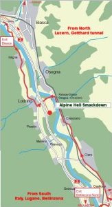 GPS road position:degrees:E 8.99073N 46.29808minutesE 8° 59.443'N 46° 17.884' secondsE 8° 59' 26''N 46° 17' 53''